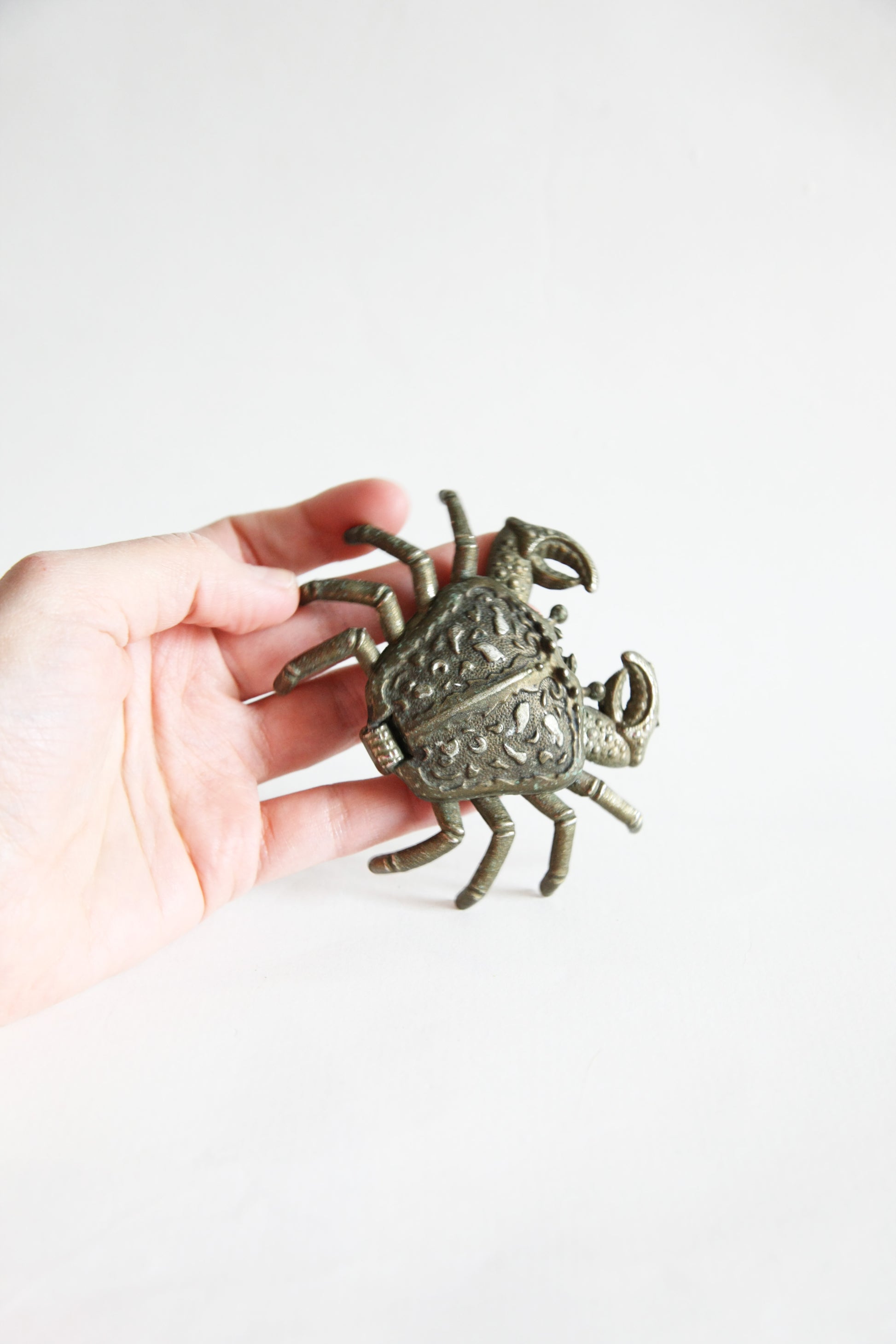 Cendrier en laiton bruni en forme de crabe, avec couvercle ouvrant.