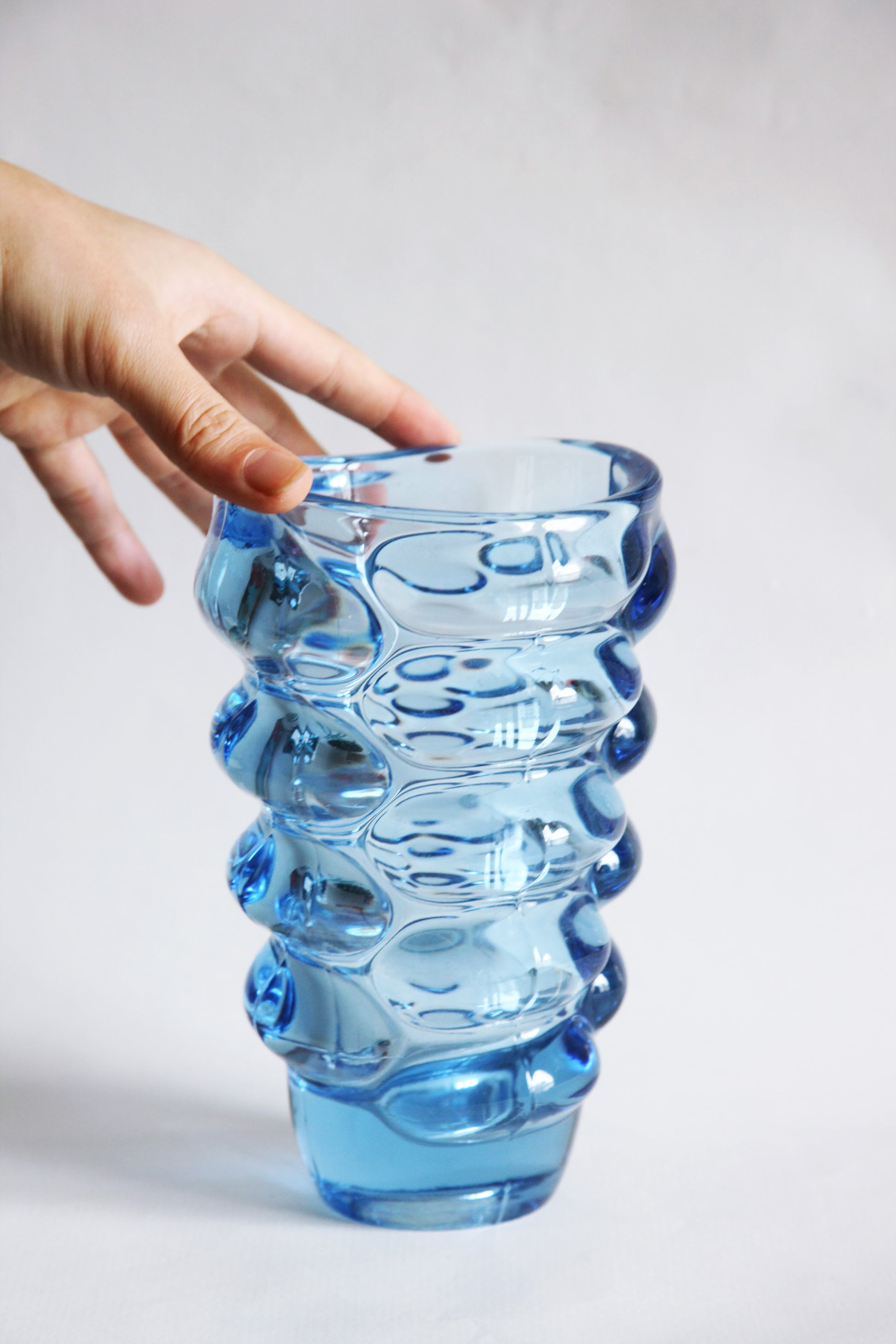 Vase en verre design par Vladislav Urban, produit par la verrerie Hermanova Hut dans les années 1960 (modèle de 1962). Forme organique obtenue par moulage de verre coloré.
