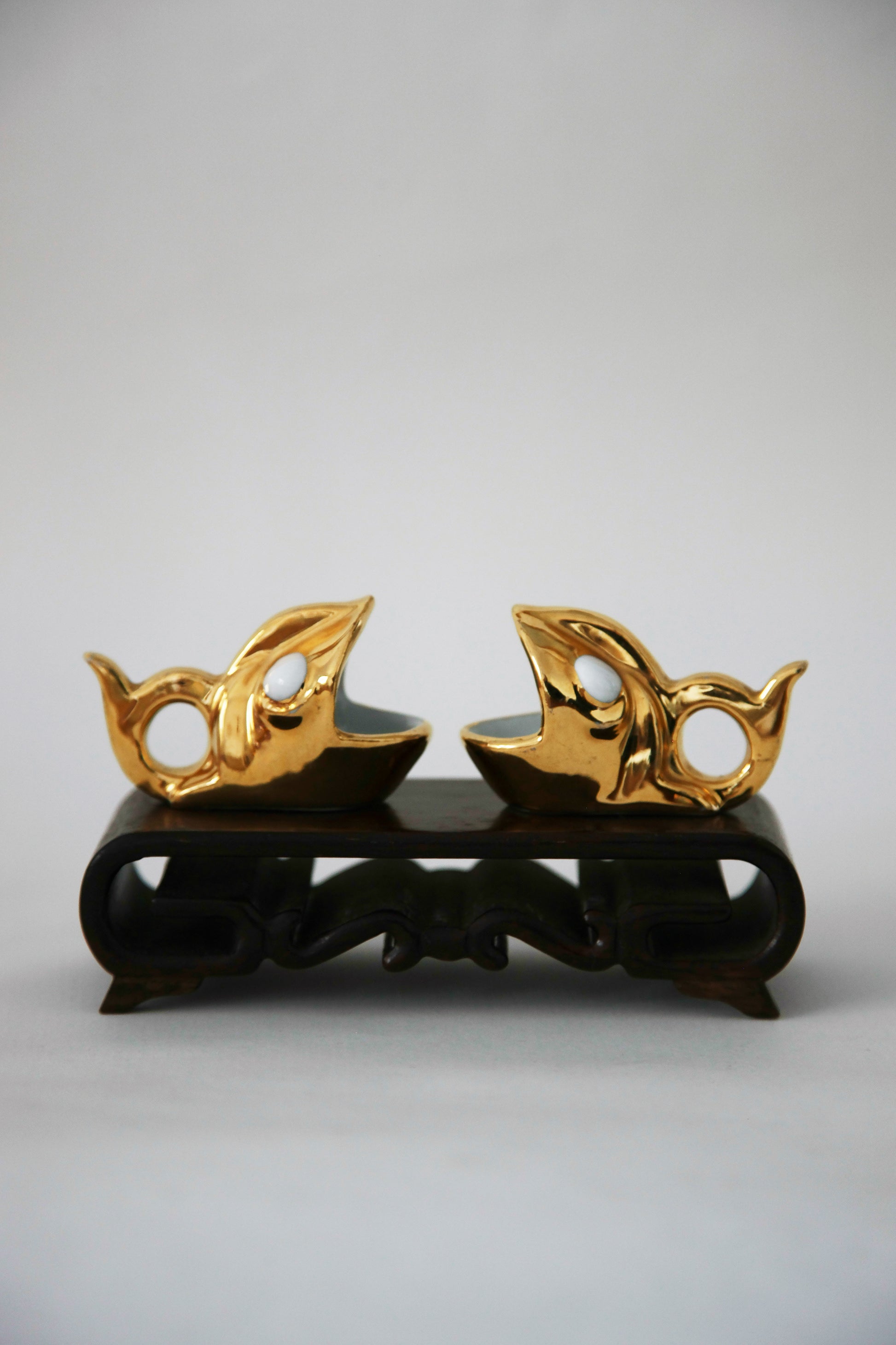Paire de salerons en porcelaine dorée signés Robj Paris.