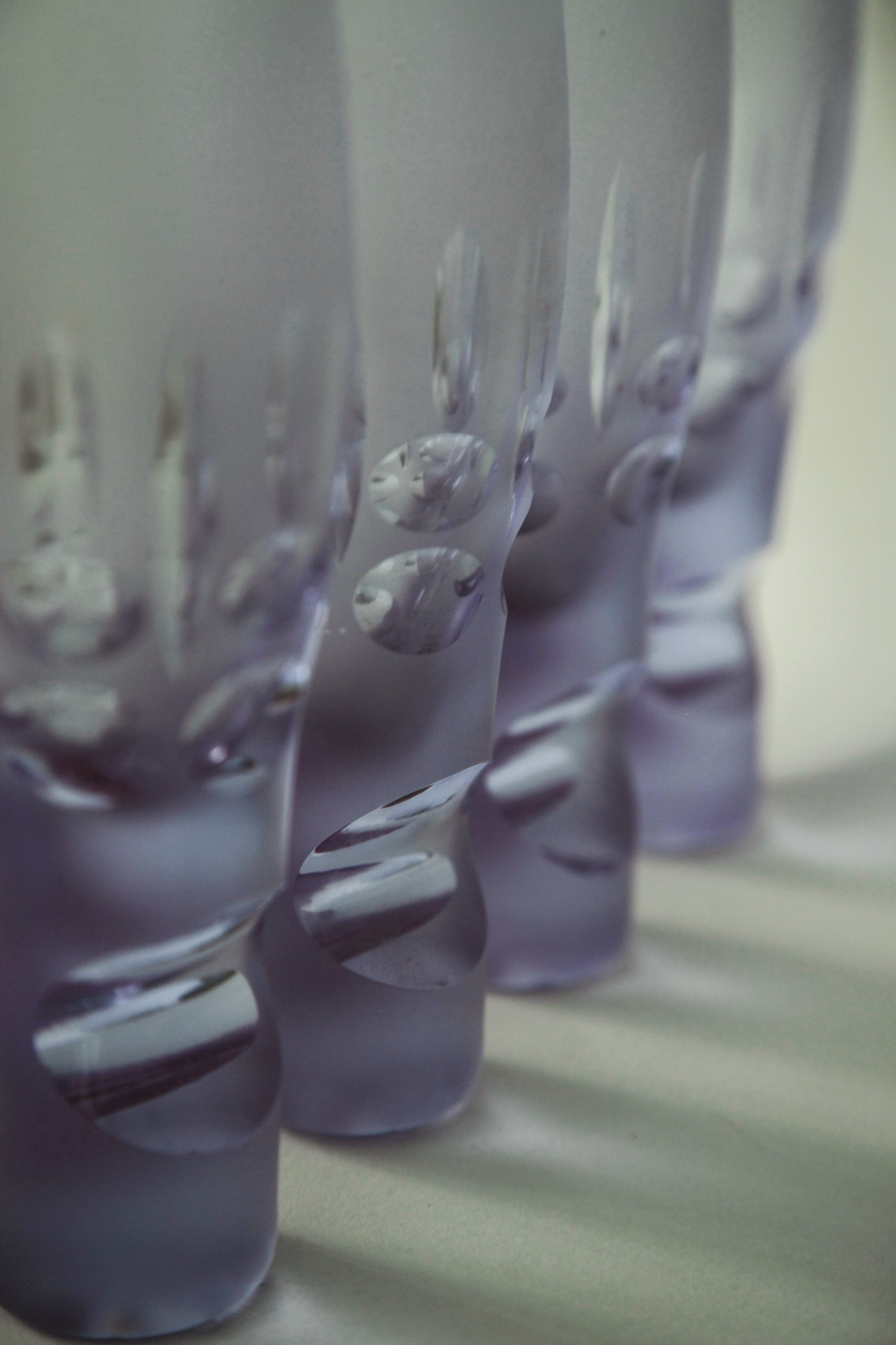 5 verres en alexandrite violette, avec prise pour les doigts sur la tige